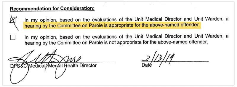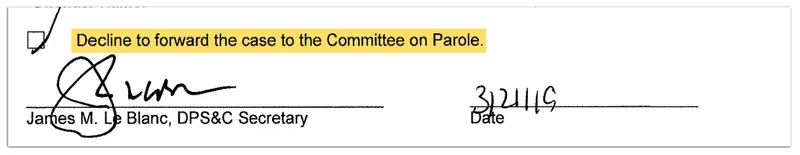 Case in point: Although Parker was initially sent to a medical facility after he was injured, the Department of Corrections brought him back to Angola. (Janice Parker has a copy of a letter from LeBlanc to Angola’s warden saying it was because Parker’s condition had changed, but her attorney was told years later that it had been because of an unspecified behavioral issue.) Since then, Parker has been repeatedly denied any kind of medical release, even though Angola’s medical director, unit warden and a mental health team have recommended it.