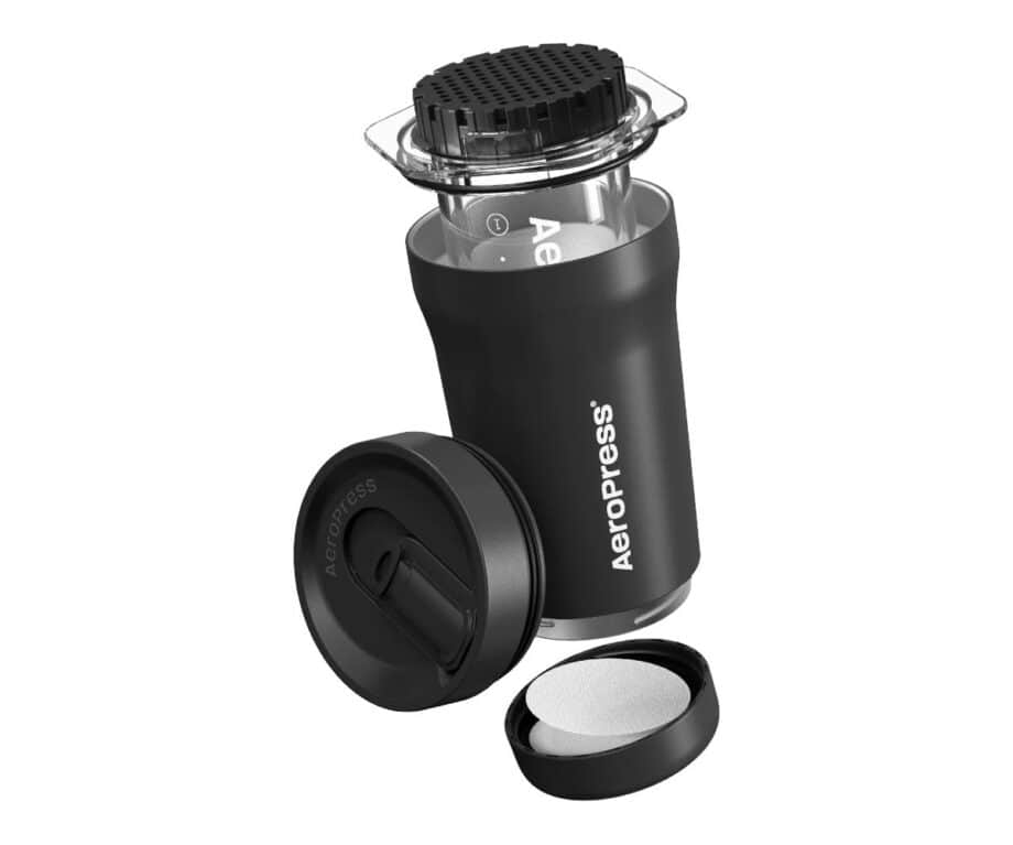 The AeroPress Go Plus is a complete travel coffee system — you can unpack it, brew our velvety smooth, signature brew and repack the press back into the custom tumbler that doubles as a storage container – all in about 2 minutes. It brings the convenience and one of a kind flavour AeroPress is known for to the car, office, hotel, vacation rental or wherever adventure takes you.
