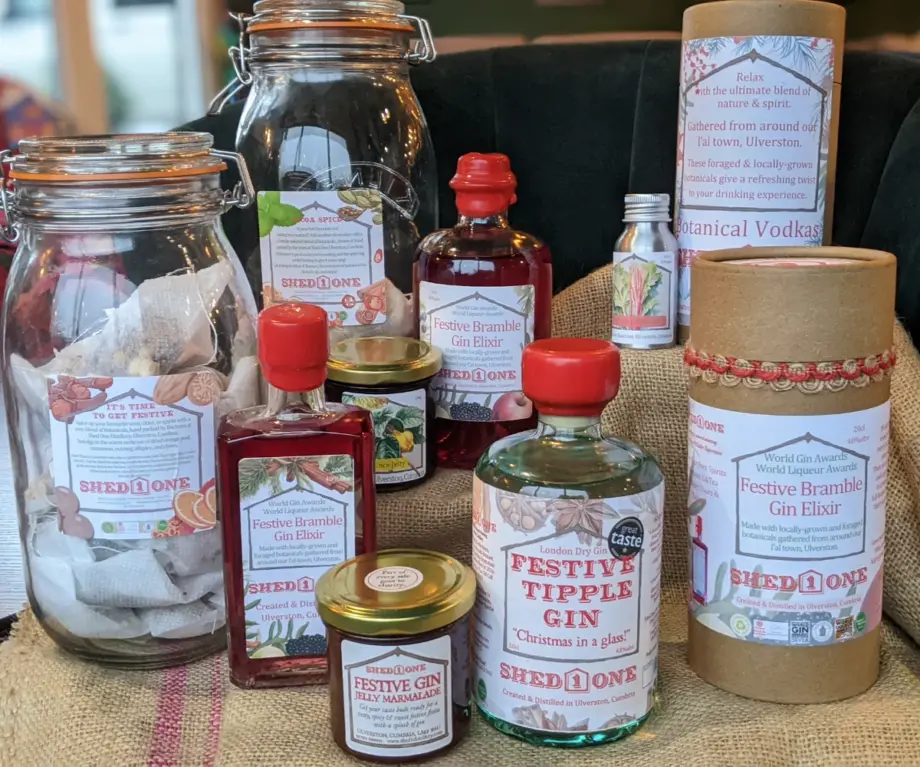 Vodkas from £22.95, 50cl, gins from £34.95, and bespoke hampers also available. Every order comes with an added festive drink surprise! Gin hampers are available from £25. Shed One plant a tree for every online order.