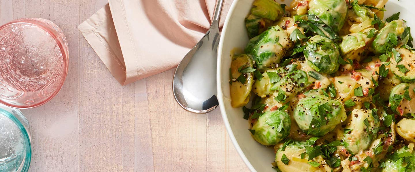 This 15-minute side dish will turn Brussels sprouts deniers into believers! The Brussels sprouts are cooked alongside leeks, whose delicate flavor pairs well with the tangy cheese sauce. Pops of sun-dried tomatoes, meanwhile, add just the right amount of drama. One reviewer writes, “Very tasty! Kind of like mac and cheese Brussels sprouts!”