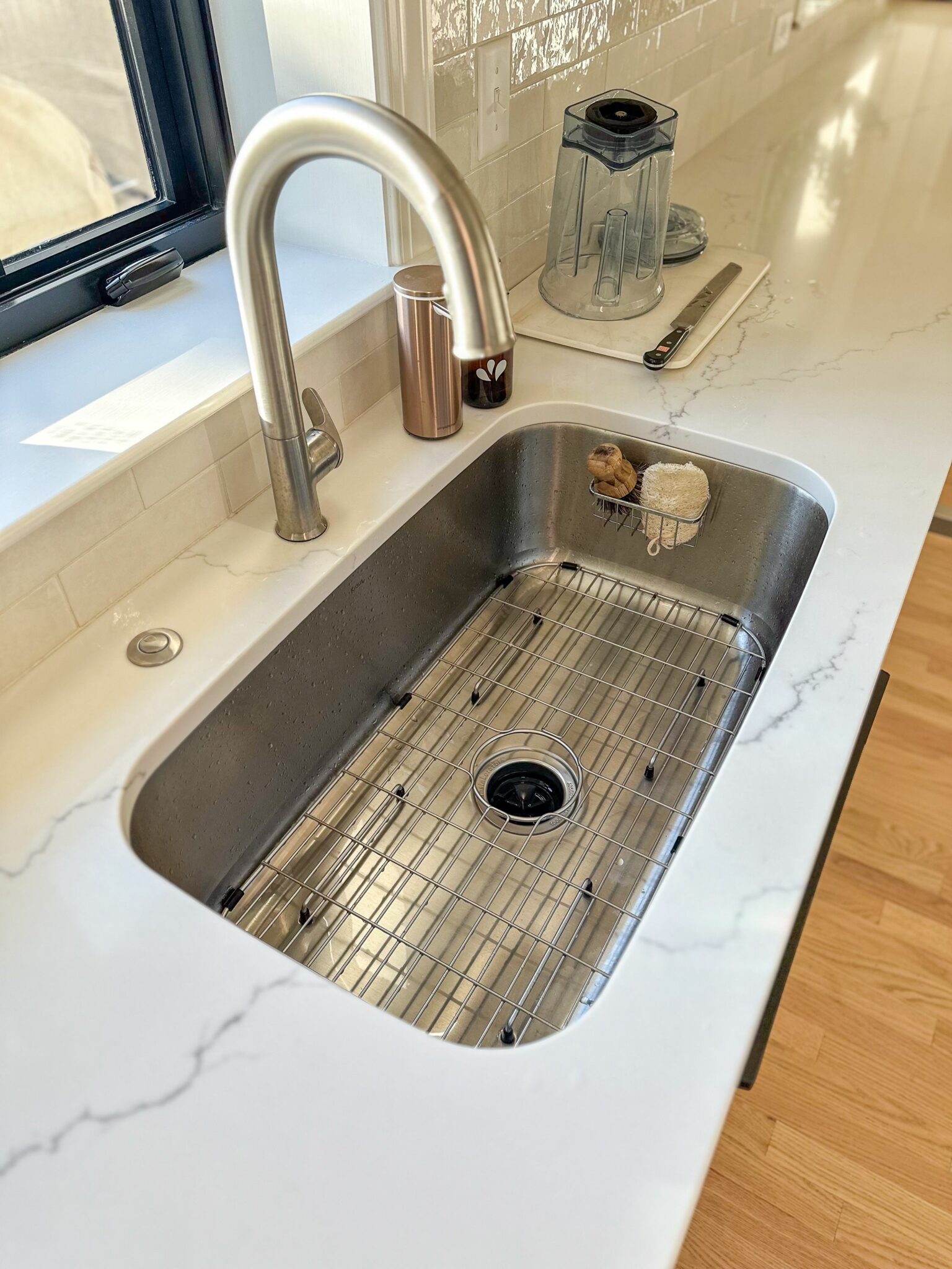 I could not wait to organize our newly renovated kitchen, including the kitchen sink area starting with our new wide single basin sink!