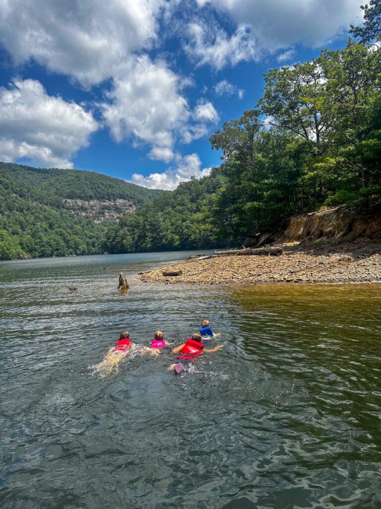 We boated over to Butterfly Island, which was discovered by Thomas and Mazen while kayaking. The kids loved swimming to shore and looking at the sparkling mica-infused sandy beach. We found a few butterflies on this magical place!