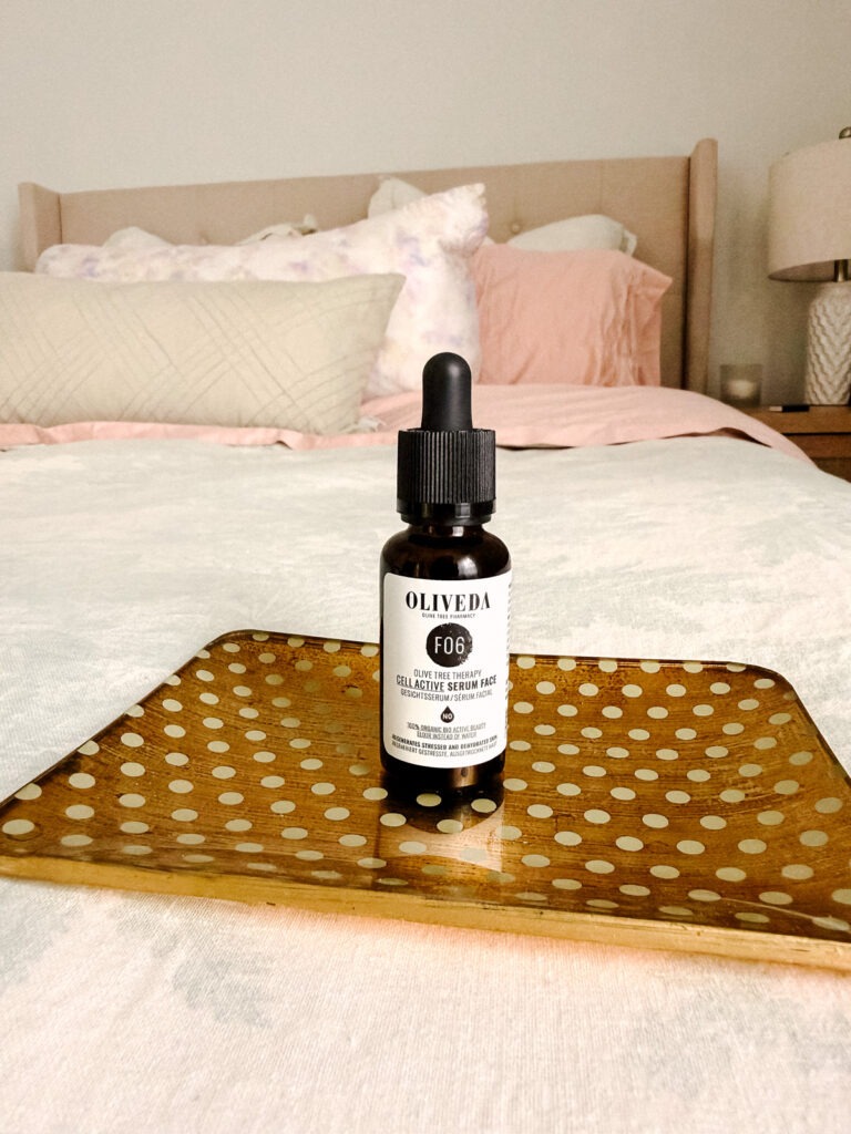 This is a great starting point if your skin reacts easily. Compared to the F59, it’s a lighter, hydrating serum that’s generally well-tolerated by sensitive skin and works beautifully as a foundational serum. It helps moisturize, tends to calm redness, and supports overall skin balance. According to reviews, the hydroxytyrosol base is soothing and not too active, which makes it a good everyday serum for reactive skin types. I love it as a baseline serum if you’re new to Oliveda.