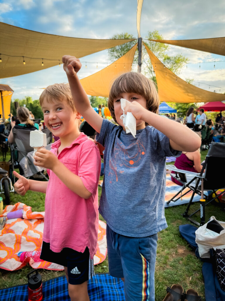 These outdoor concerts are so great this time of year before it gets too steamy! Birch took one of his friends, and Thomas and I met some of ours there, too. Perfect evening!