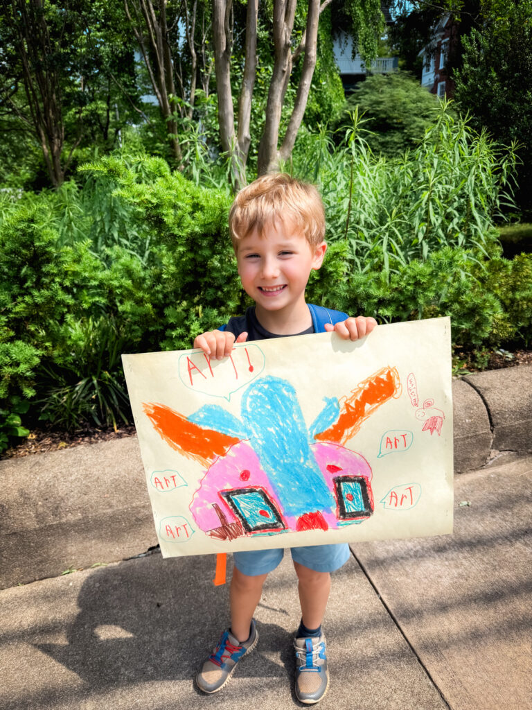 Birch so proud of his artwork getting off the bus <3