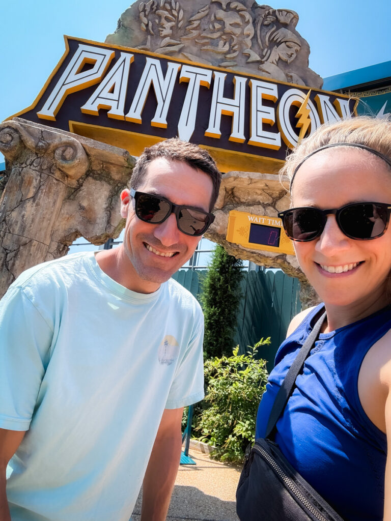 Thomas and I rode Pantheon twice in a row which was the CRAZIEST / BEST coaster I’ve ever done!! (Mazen was in charge of Birch while we went, and that worked out really well. We set them up in the arcade!). If you want to get a taste for what it’s like, check out this front seat YouTube video! It was seriously so great.