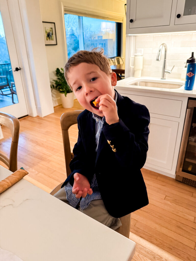 This cutie decided to wear Mazen’s wedding outfit to school one day. How handsome! He is really into fashion.