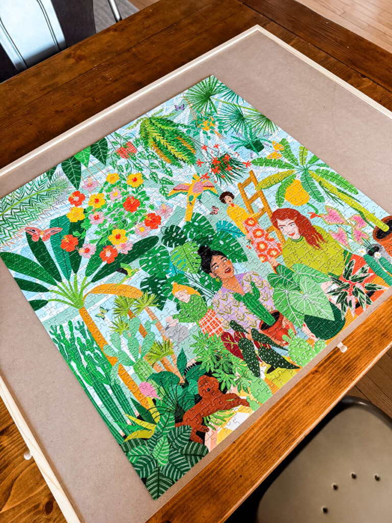 Finished my Plant Ladies puzzle! I also bought a puzzle board and did. not. like. Sent it back to Amazon. It was so big and heavy and just felt klutzy to me. I may have just bought the wrong one, but I think we’ll just stick to the table.