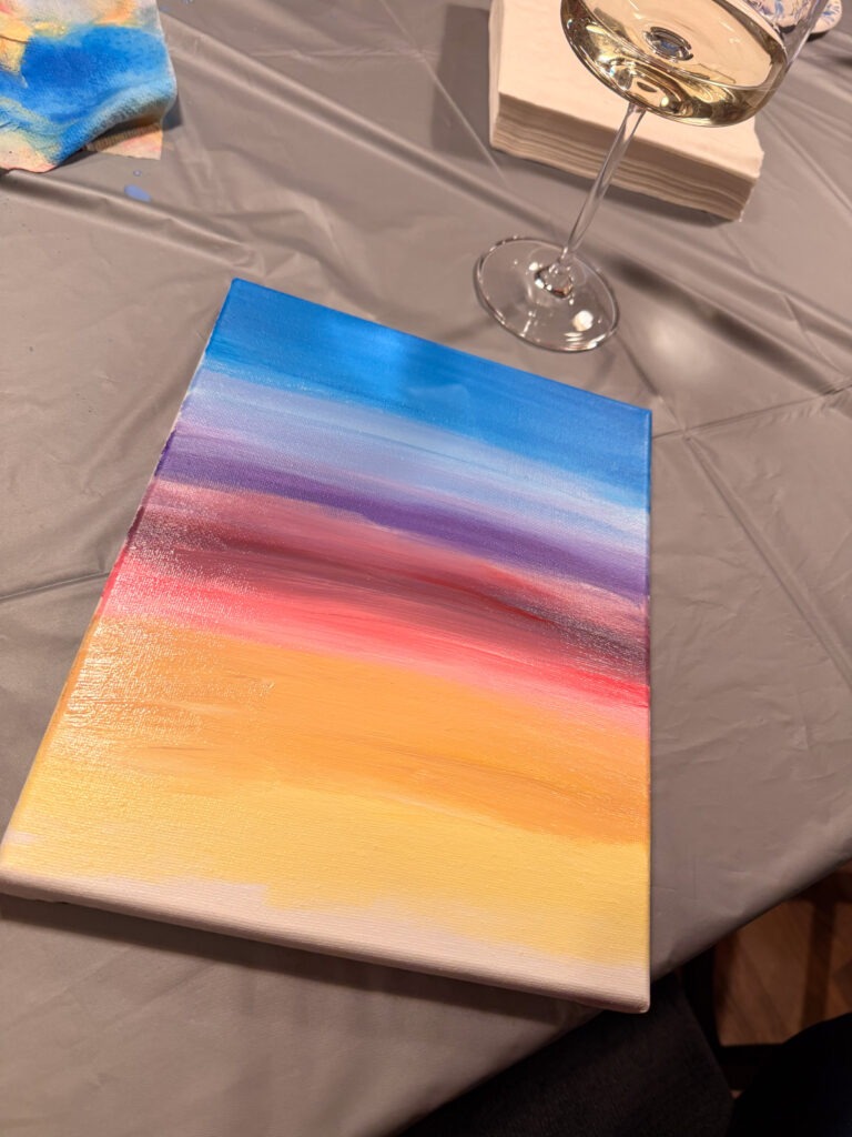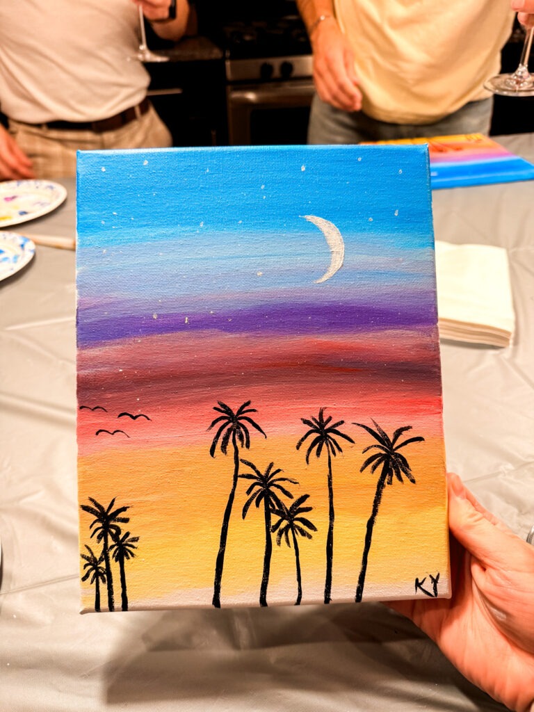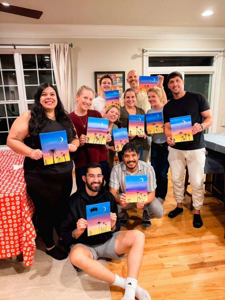 Our friend group was so excited to do a paint and sip night for Jonathon’s birthday. We have an actual art teacher in the mix – Ms. Maddie!