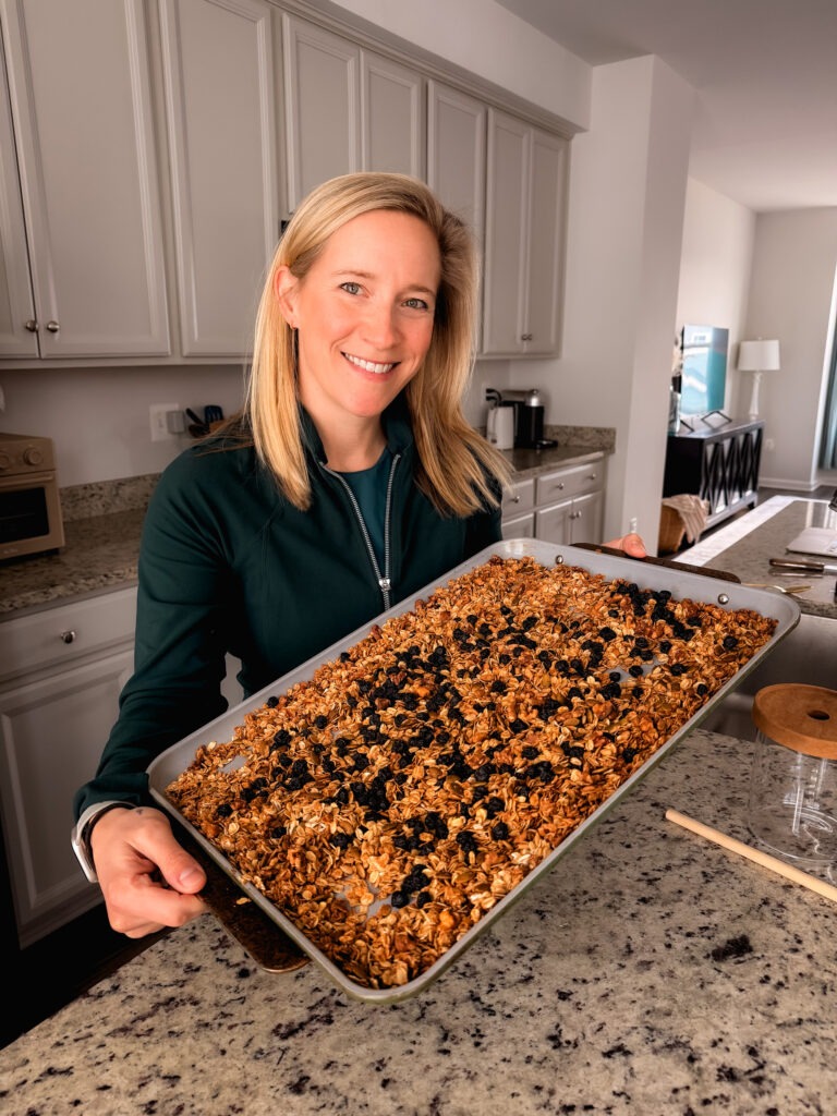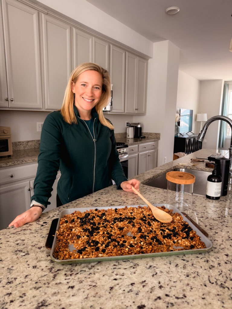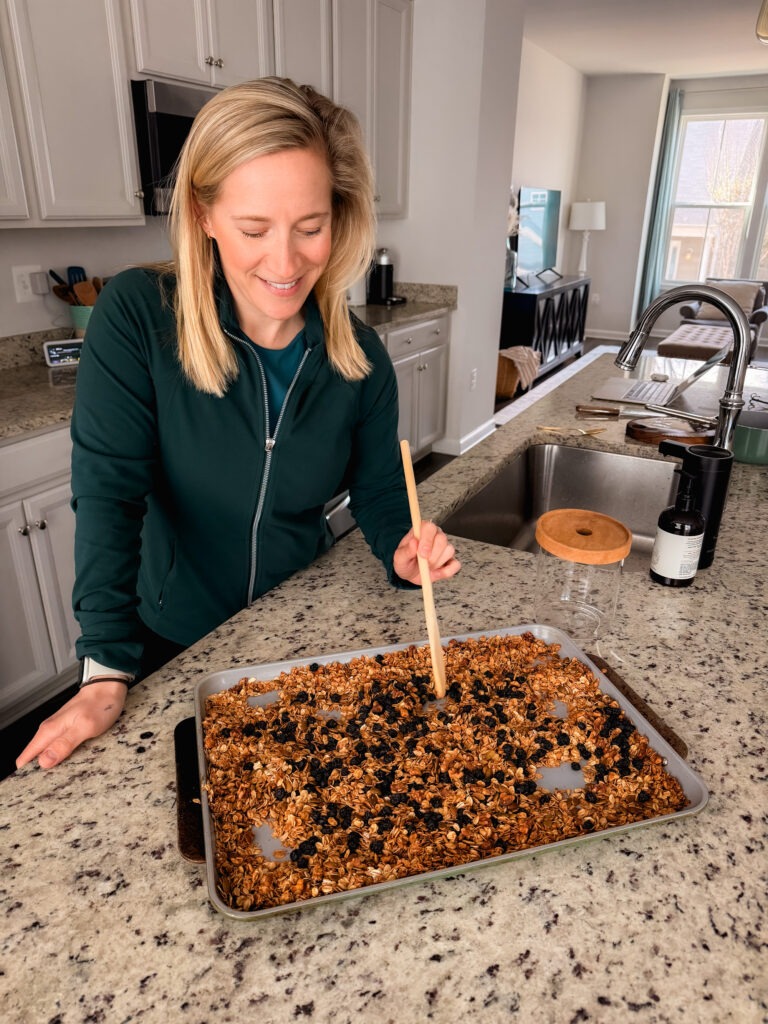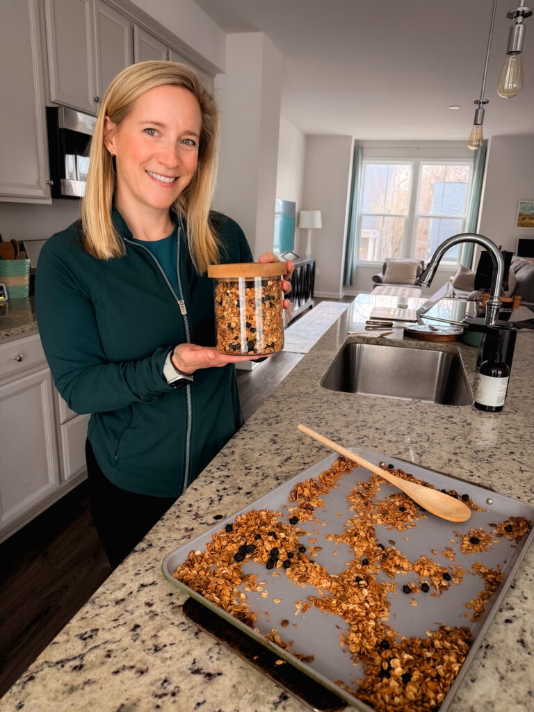 While there are tons of healthier store-bought granolas on the market, once and I while I enjoy making a large batch of granola at home, especially if I’m hosting company. Making it yourself lets you control exactly what goes into it. You can choose your favorite nuts, seeds, and dried fruit, adjust flavors, and make it as sweet or salty as you wish!