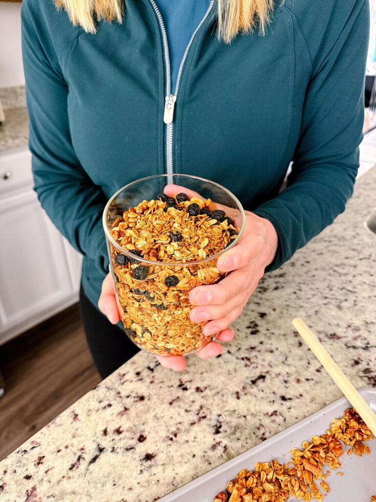 Granola combines complex carbohydrates, protein, and healthy fats, making it a balanced snack or breakfast option, especially when paired with Greek yogurt or whole milk (for more protein + satisfying fats). You can sprinkle it on for a lighter breakfast or have a bowl of it if you’re trying to eat more nutritionally or calorically dense foods.