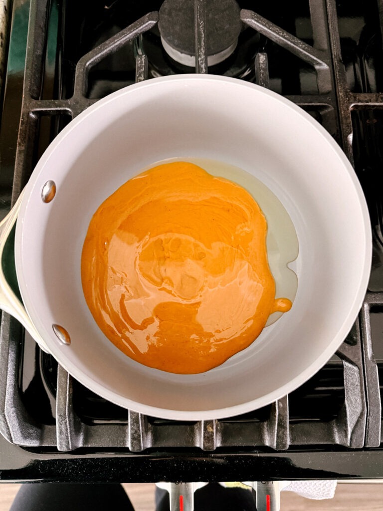 I used my favorite Cocomo Peanut Butter which is quite runny to start. If you have a very thick peanut butter, you may need to add a bit more oil to get it liquidy.