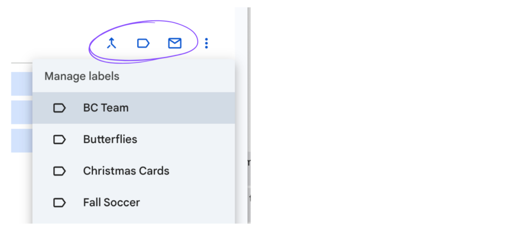 - Search for and select the contacts you’d like to group and look for the label icon. Add them to the label.