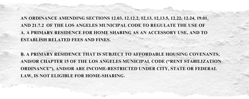 The LA Home-Sharing Ordinance, which took effect in 2019, bars rent-controlled properties from being used for short-term rentals.