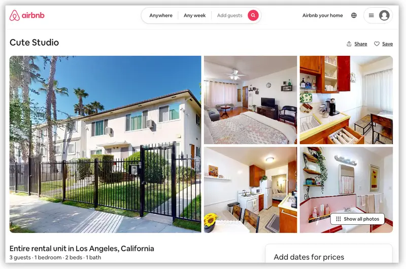 A Los Angeles resident said he booked what was listed as a “cute studio” at this rent-controlled building in Hollywood while his home was undergoing repairs.