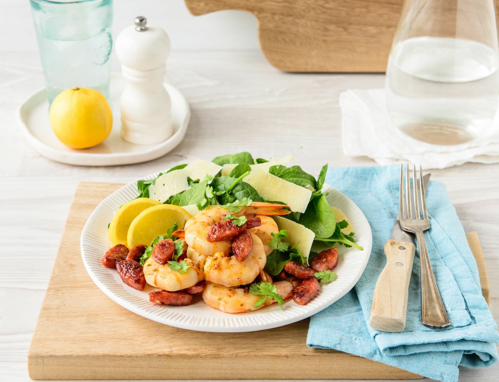 This is a Mediterranean inspired recipe that includes a classic combination of prawns and chorizo. It’s packed with protein and tastes amazing!