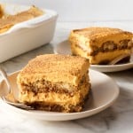 This pumpkin tiramisu recipe is a show-stopping fall dessert! No offense to pumpkin pie, but it might just steal the spotlight on your Thanksgiving dessert table. It features luxe layers of pumpkin cream, chai-soaked ladyfingers, and a gorgeous dusting of warm spices. Rich, creamy, and packed with fall flavors, it’s impressive and delicious.