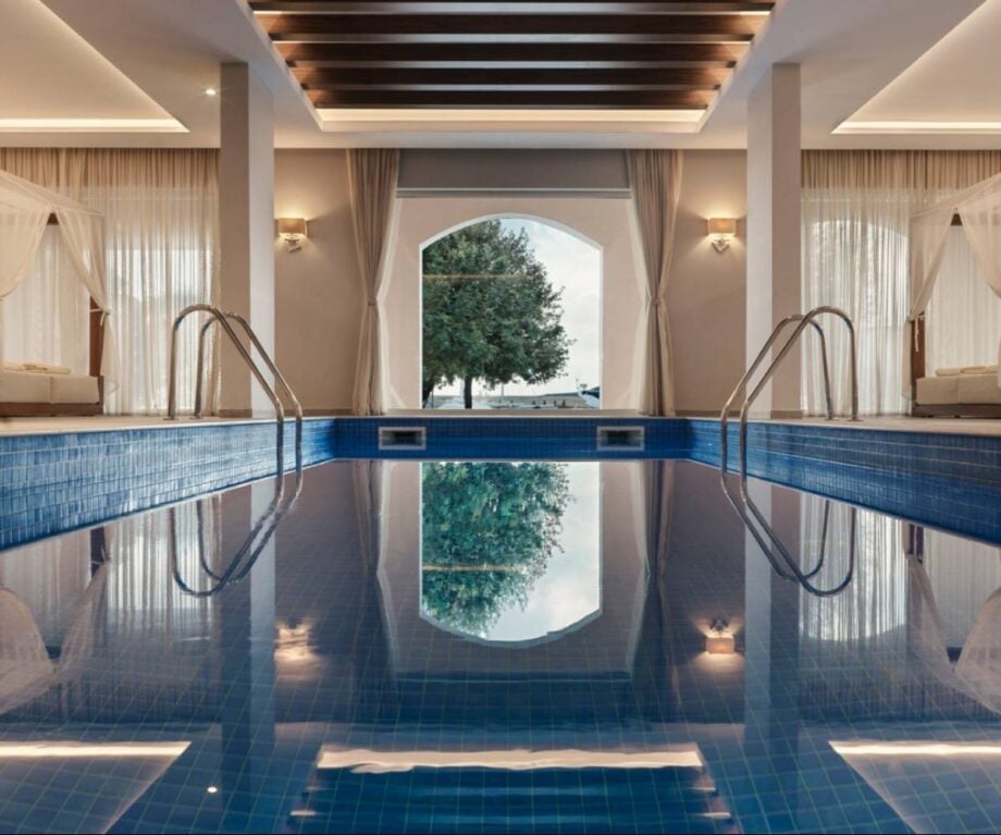 There are both indoor and outdoor pools, a steam room and an experience shower.