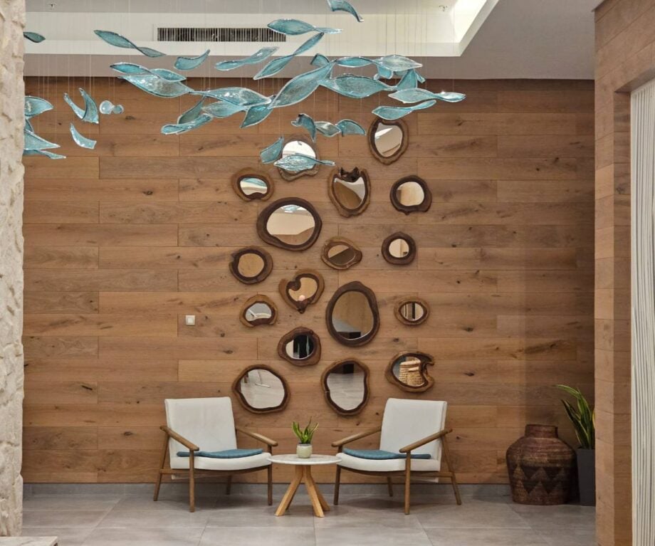 Rade met me with a warm, calm welcome and personally accompanied me to Room 3010, passing Milena Živković’s sea-themed artwork that adorns the corridors. It was only when I explored the hotel more later that I realised that her paintings mirror the ocean depths, transitioning from sun-drenched shallows at the top of the building to the mysterious deep on the lower floors.