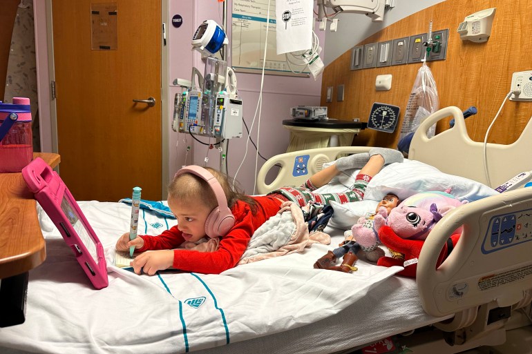 Surgeons installed temporary tubes in a vein near her heart and a feeding tube in her abdomen. Her hair fell out as the treatment intensified, and a thin layer of skin peeled off, forcing her new family to wear surgical gowns and gloves when they wanted to be close.