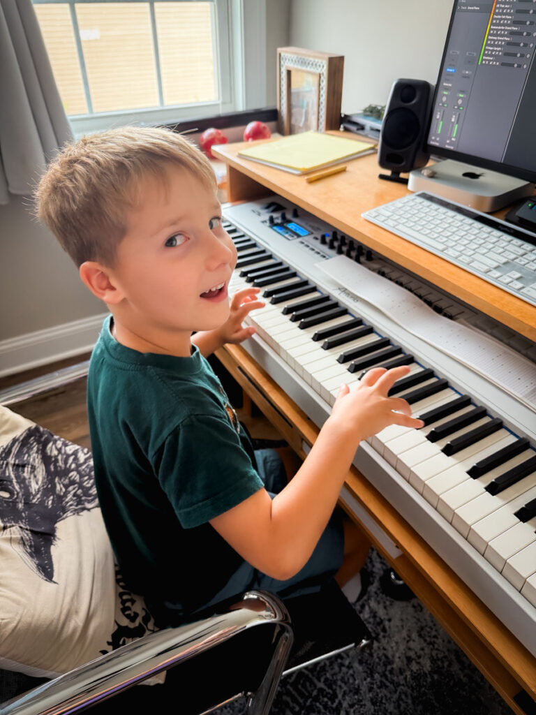 B is so good with music we’re considering piano lessons! We don’t own a piano but have a friend who does. If your kids started lessons around age 7, leave any tips in the comments!