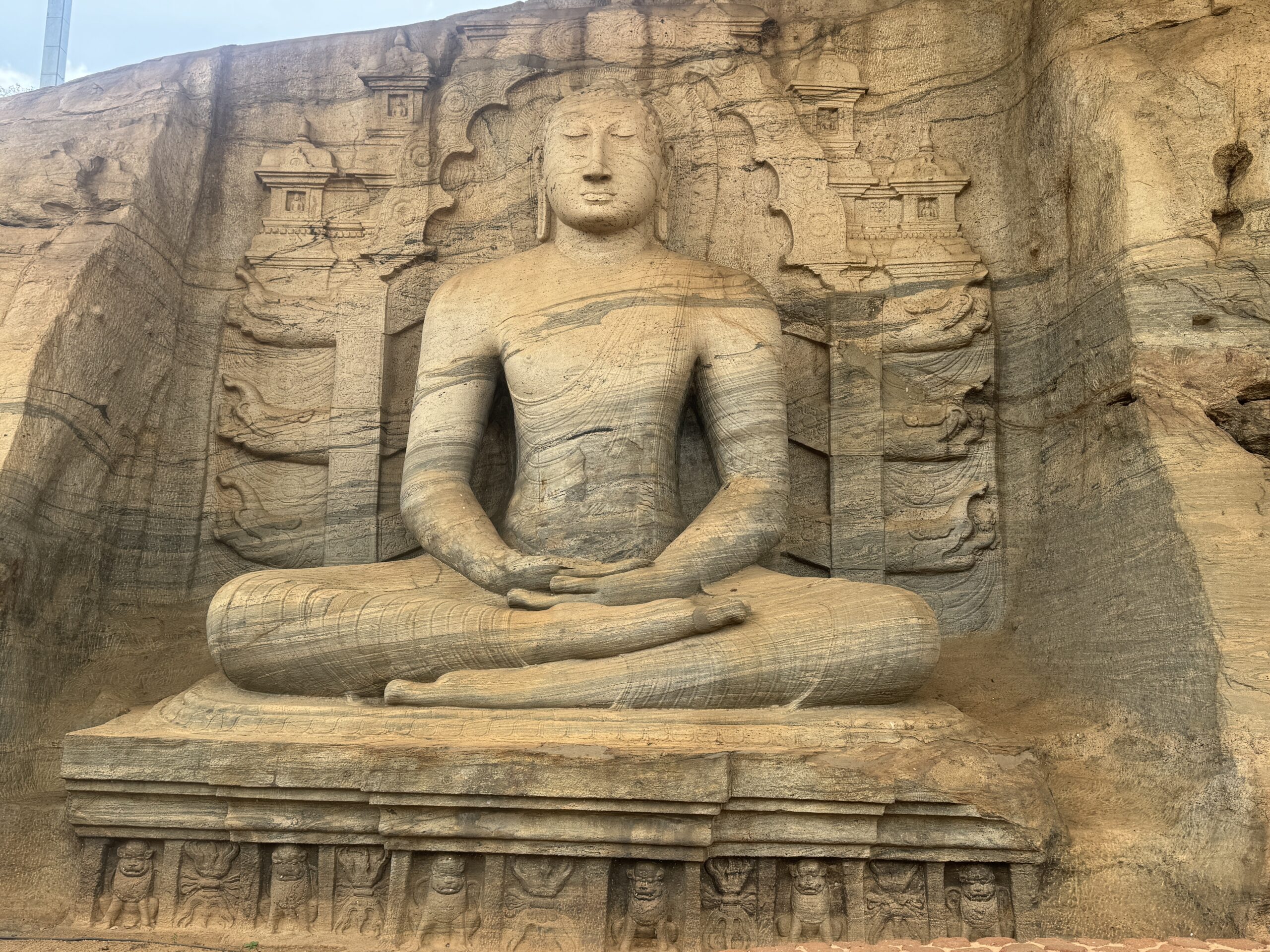 Our first full day began early at Polonnaruwa (entry $30 USD), the UNESCO site of ancient Sri Lankaβs second capital, with history dating back nearly a millennium and where serene Buddhas and crumbling palaces rest amid shady trees and monkey chatter.Β The highlight was the 12th-century Gal Viharaya Buddha statue carved directly into the rock.