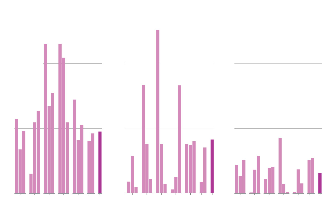 The Post obtained transcripts of presidential debates for the final two candidates since 2000 from The Commission on Presidential Debates. The topics of analysis were determined using the categories cited as “extremely important” for potential voters from The Washington Post-Schar School Decider’s poll. Health care was added as a topic given its relevance to U.S. politics, despite it not being a category of the poll. For each topic, The Post developed a list of keywords related to the category and counted how many times each keyword appeared in the speeches.