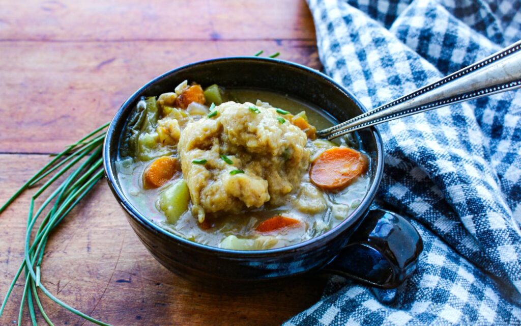 This classic comfort food Vegan Chicken and Dumplings is based on a vintage Southern recipe. Full of flavor and good nutrition, this vegetables dumpling recipe is a fabulous one-dish meal that cooks up in 30 minutes.