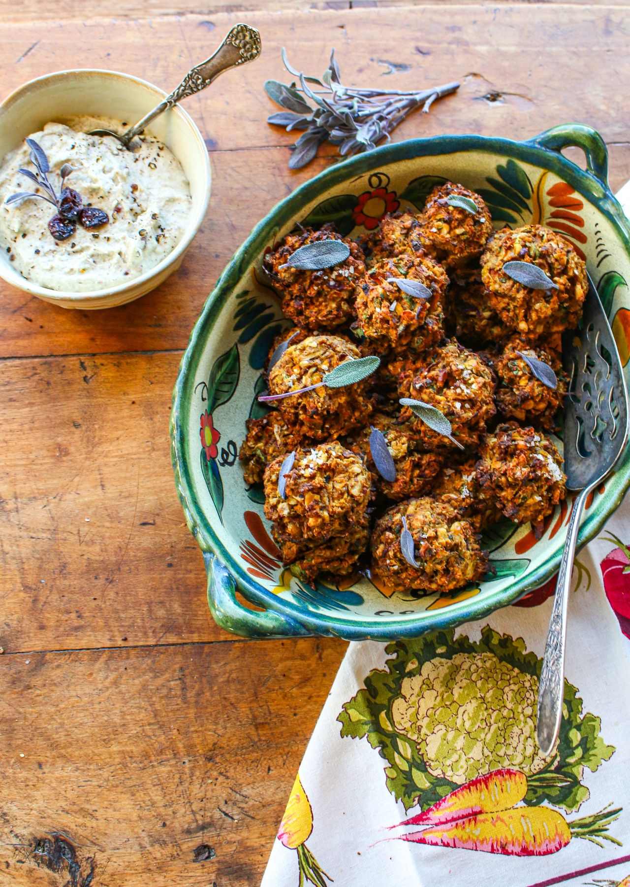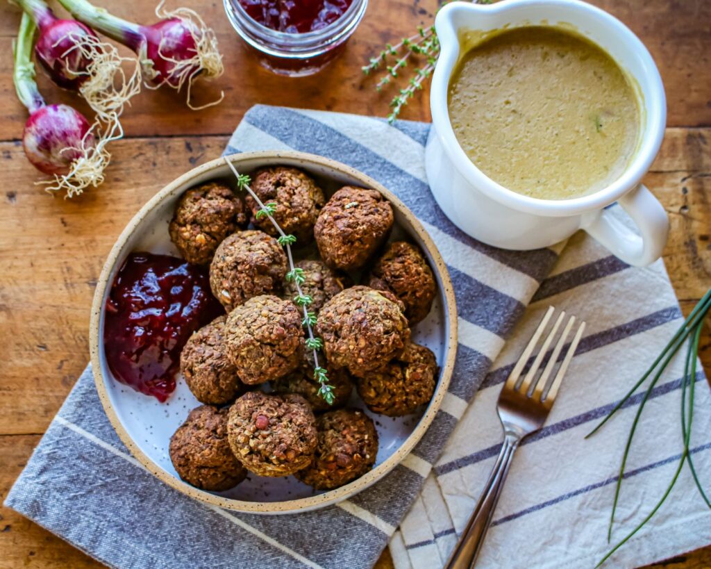 Golden Beet Vegan Meatballs with Almond Sage Cranberry Cream