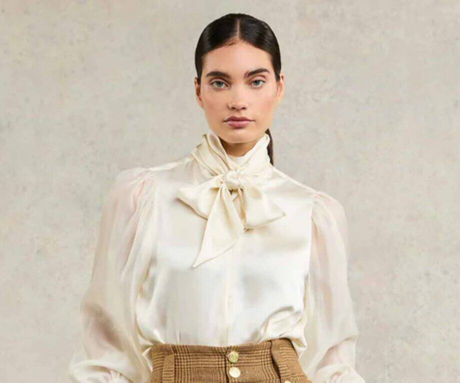 Beneath the heavy wools, it can help to have a little softness. Designed with a fluid drape with a statement oversized bow collar, this blouse has been beautifully created from an elegant satin fabric.