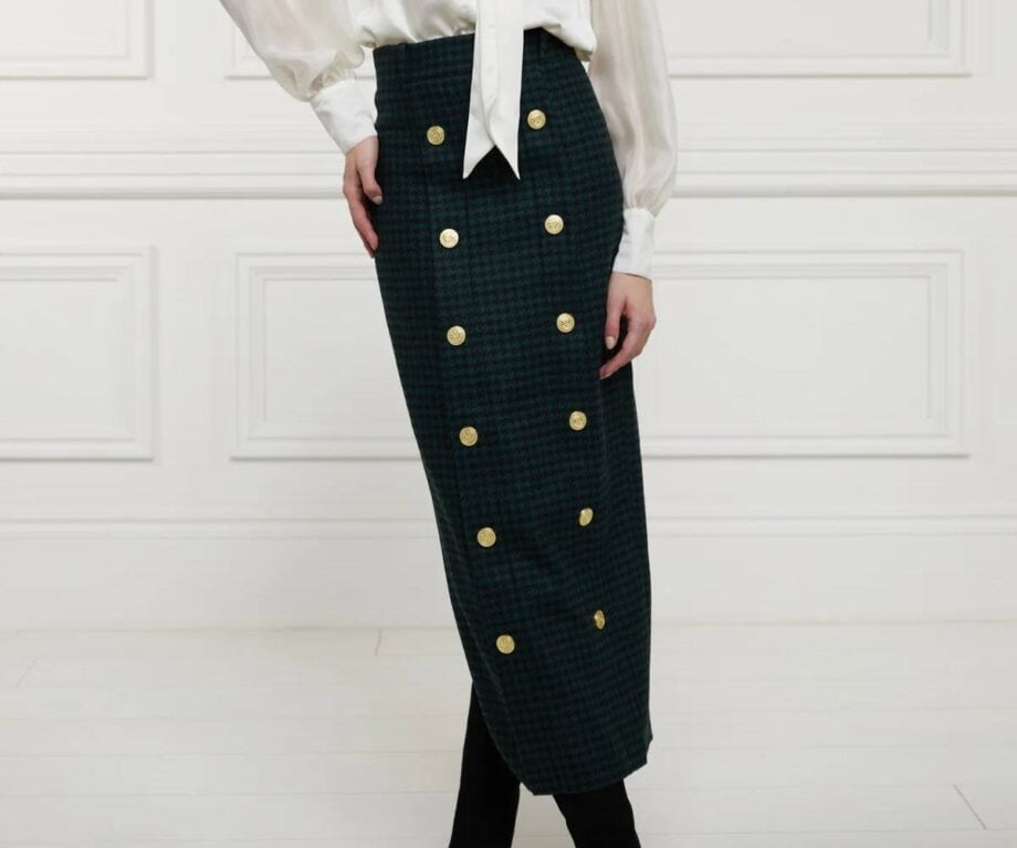 Knightsbridge Maxi Skirt in Emerald Houndstooth