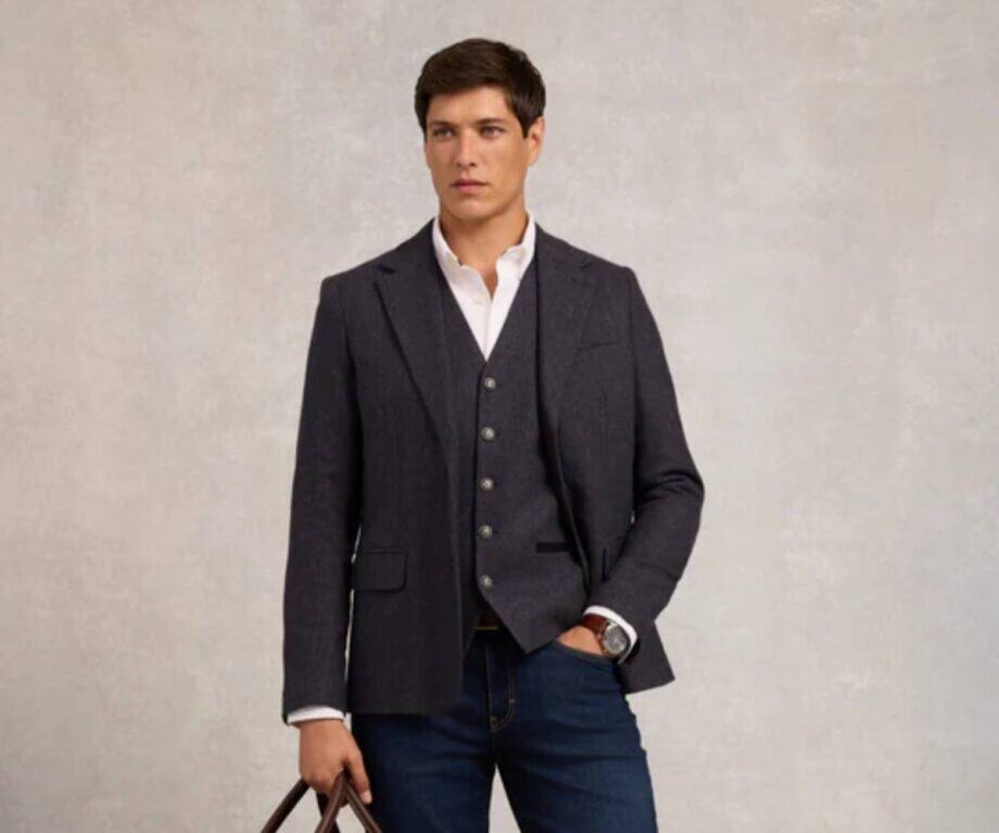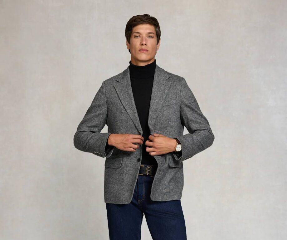 Or how about the same blazer in mono herringbone? Meticulous, tidy and effortlessly commanding, and finished with traditional Holland Cooper detailing and braided lapels, it would suit the sharpness of the city just as well as it would a day at the races.